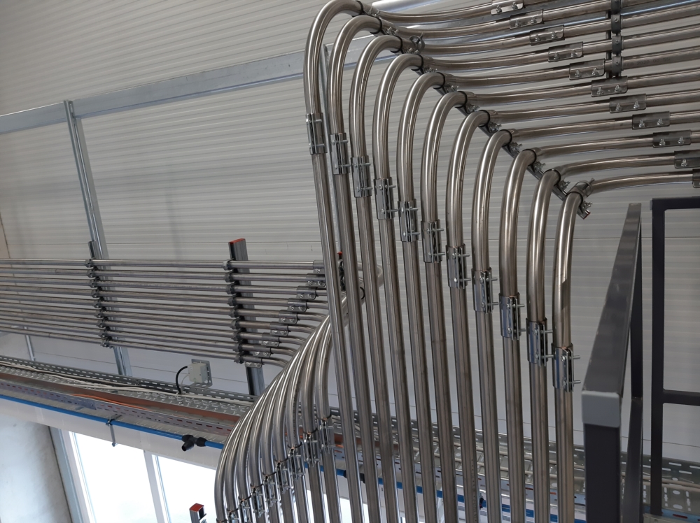 Verrohrung einer neuen Produktionshalle mit Materialbahnhof für bis zu 20 Spritzgussmaschinen.
