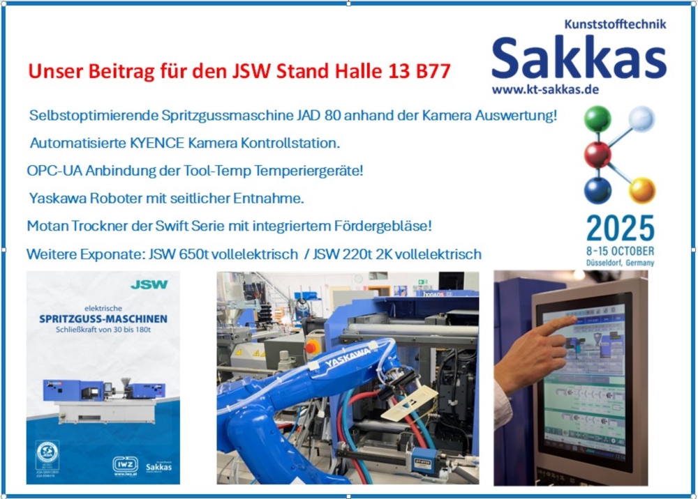 Der Schwerpunkt liegt auf Spritzgussmaschinen von JSW Japan für Mittel- und Norddeutschland.