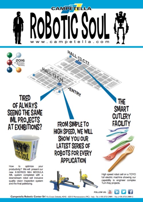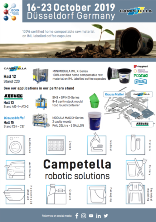 Campetella war mit einigen verketteten Automatisierungen bei namhaften europäischen Spritzgussmaschinenherstellern zu sehen.